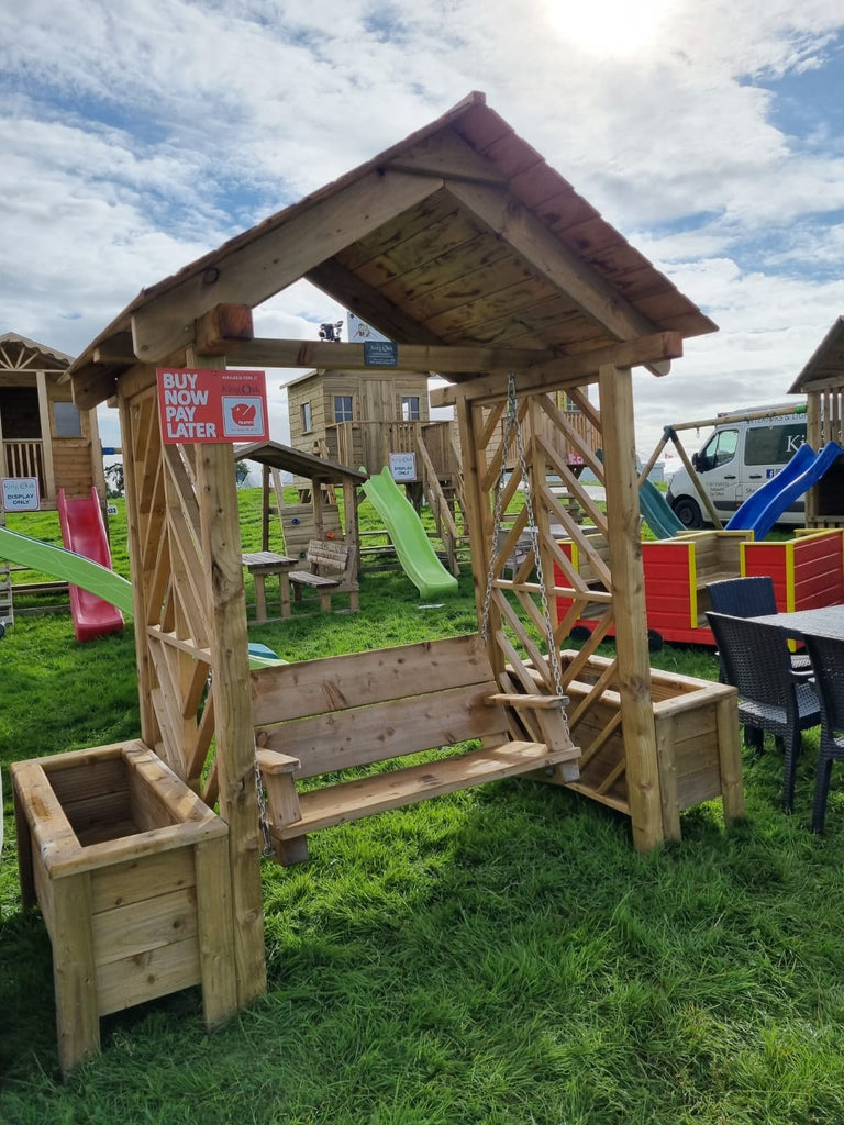 312- 4X4 Playhouse Tower With Built In Picnic Bench And Double Swing