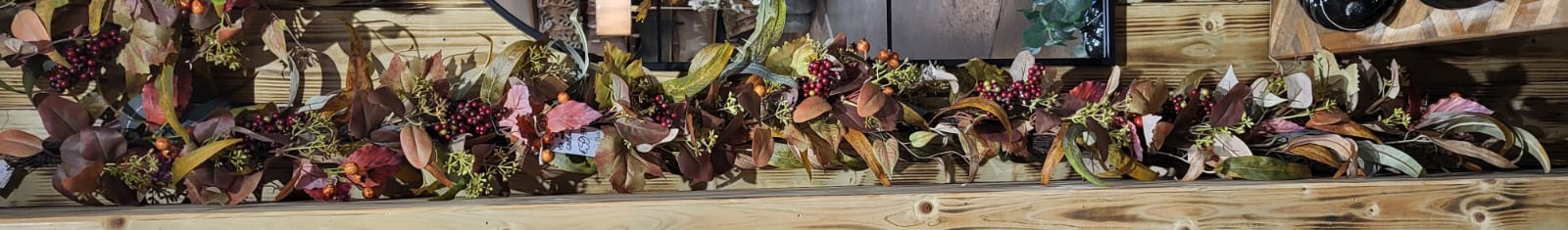 This autumn garland that has a matching wreath features autumn leaves and berries and echoes a vintage style. Measures approximately 183cm long x 20cm deep x 15cm high.