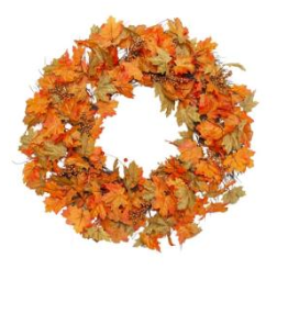 Generously full circular wreath with a mix of autumn leaves and berries.