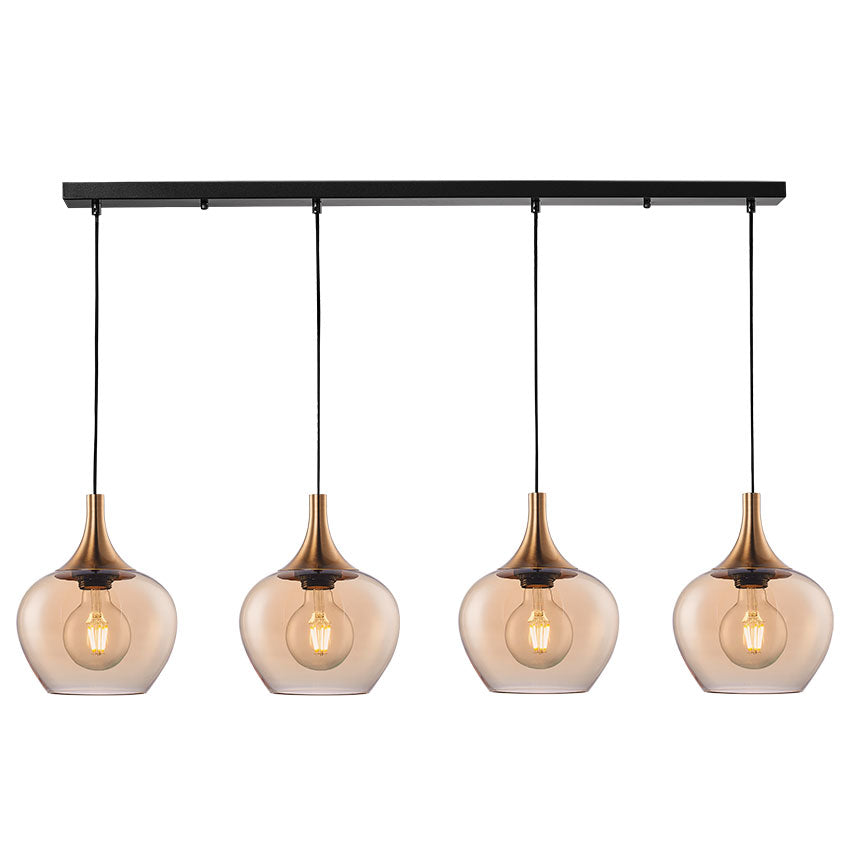 The Berkley Glass Pendant Ceiling Light features four amber glass globes and measures 32cm in height and 110cm in length. It requires four 40W E27 bulbs, which are sold separately.
