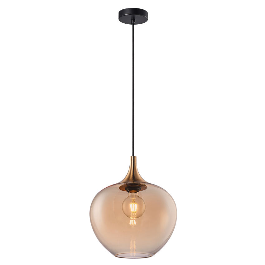 The Berkley Glass Pendant Ceiling Light features amber glass with a height of 32cm and a diameter of 29cm. It is designed to accommodate a single 40W E27 lightbulb. Bulbs sold separately.