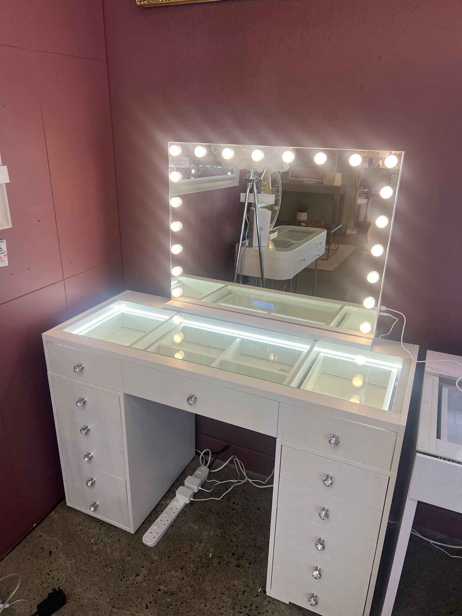 Transform your bathroom into a glamorous retreat with the Erika 13 Drawer Vanity Unit with Mirror. This stunning piece combines style and serious storage, featuring thirteen spacious drawers perfect for organizing everything from skincare to jewellery. The integrated mirror adds the perfect finishing touch for your morning routine, while the sleek design brings contemporary elegance to any bathroom. Whether you're getting ready for a night out or just perfecting your everyday look, the Erika vanity makes every moment feel a little more special. Practical, beautiful, and utterly irresistible.