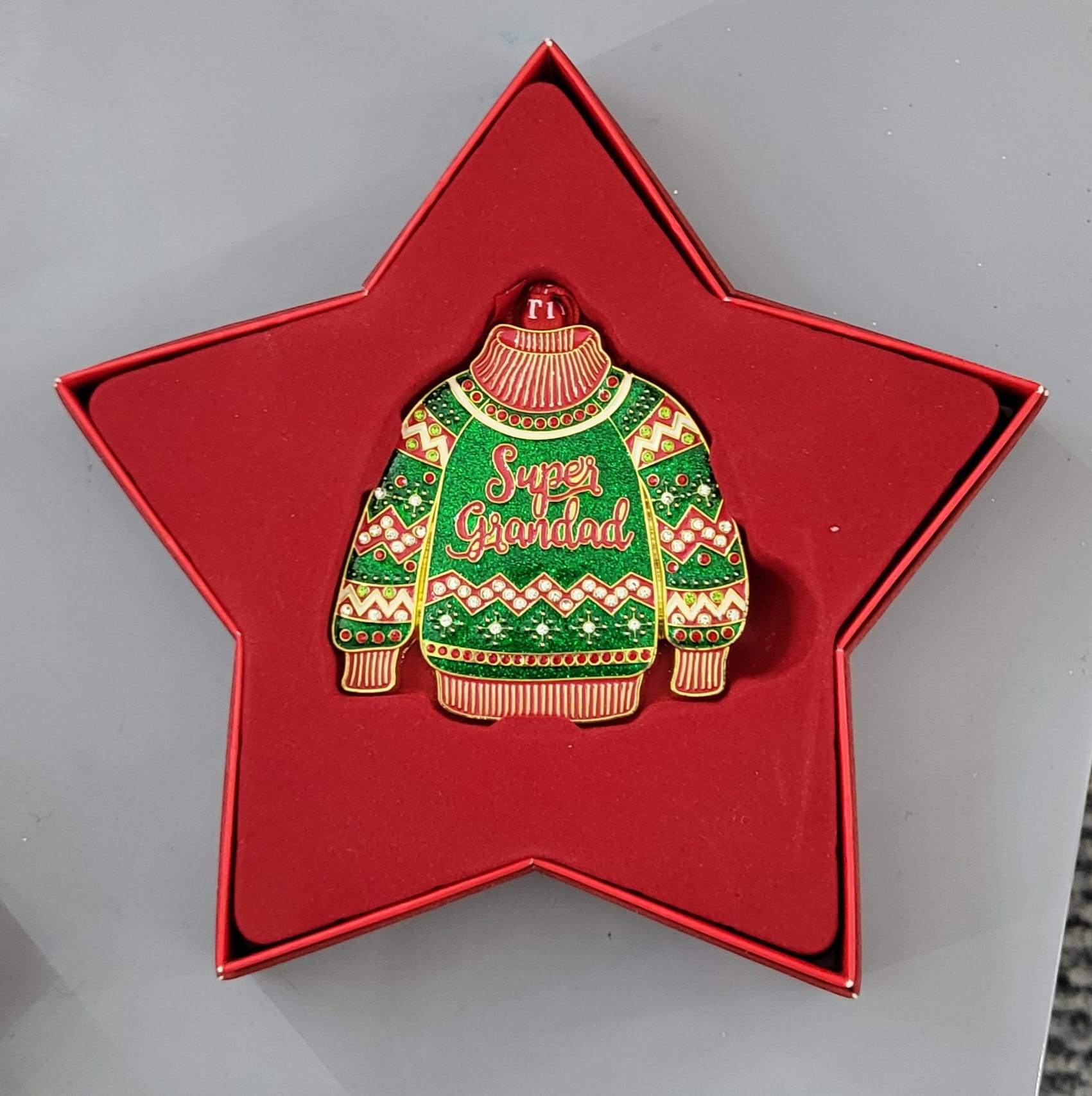 'Super Grandad' Tree Decoration presented in Tipperary Crystal's signature box