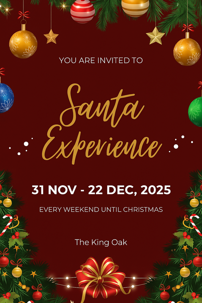 Look forward to be greeted by Daddy Elf and meander through our purpose built grotto to Mrs Clause's kitchen, before meeting Santa Clause.
